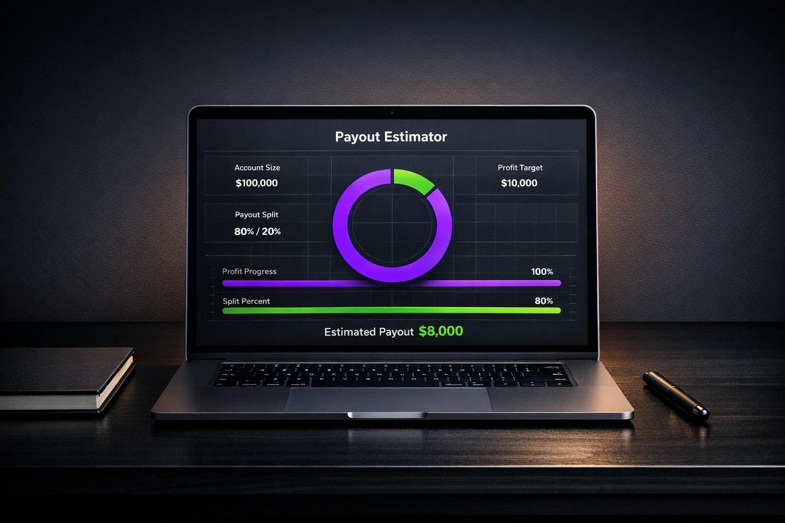 Estimate your payout from futures prop firms with our easy tool. Input account size, profit targets, and splits to see your potential earnings!
