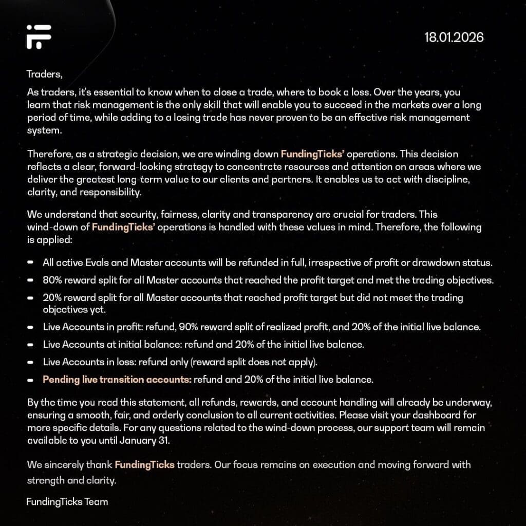 FundingTicks CEASES OPERATIONS AND CLOSES DOWN JANUARY 18th, 2025