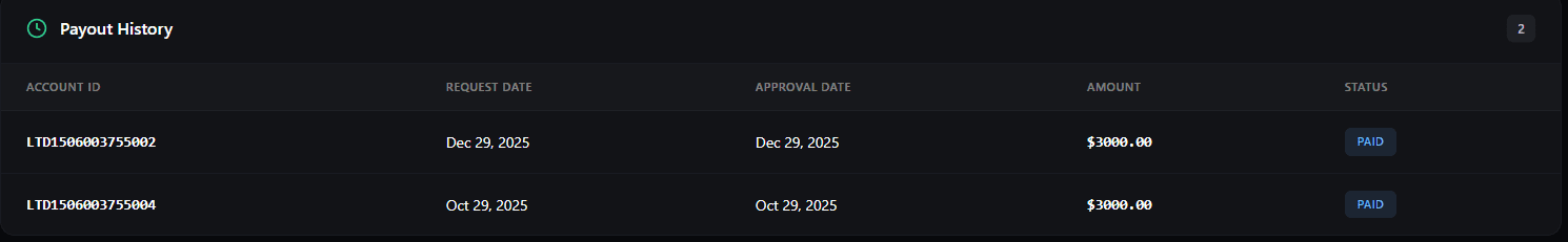 | Payout Requested | Profit Split | Final Deposit | Processing Time |