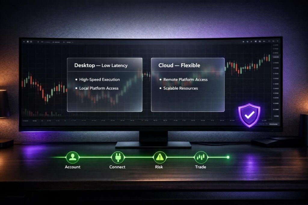 Compare low-latency desktop vs cloud trading platforms, step-by-step setup, and risk controls for funded futures accounts.
