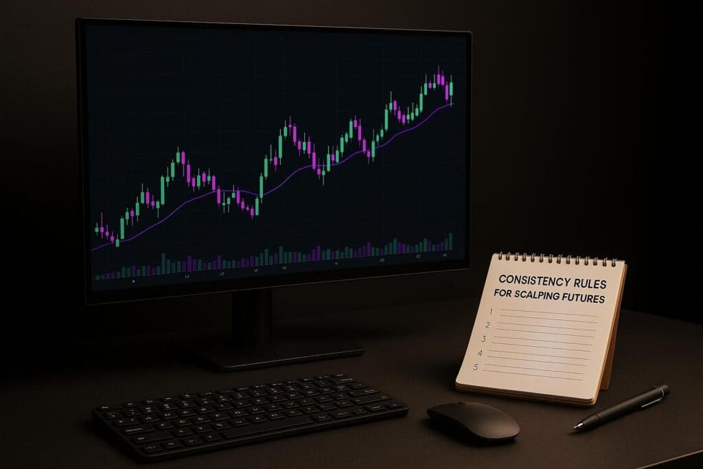 Consistency rules force scalpers to spread profits across days — master position sizing, daily targets, and tracking to avoid prop-firm disqualification.