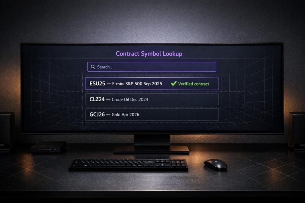 For platforms like Thinkorswim and NinjaTrader, lookup tools are built directly into the order entry and watchlist modules. These tools include drop-down menus that help you select the correct expiration month, which reduces errors from manual typing. To search for futures symbols, start with a forward slash (/) to ensure clarity.