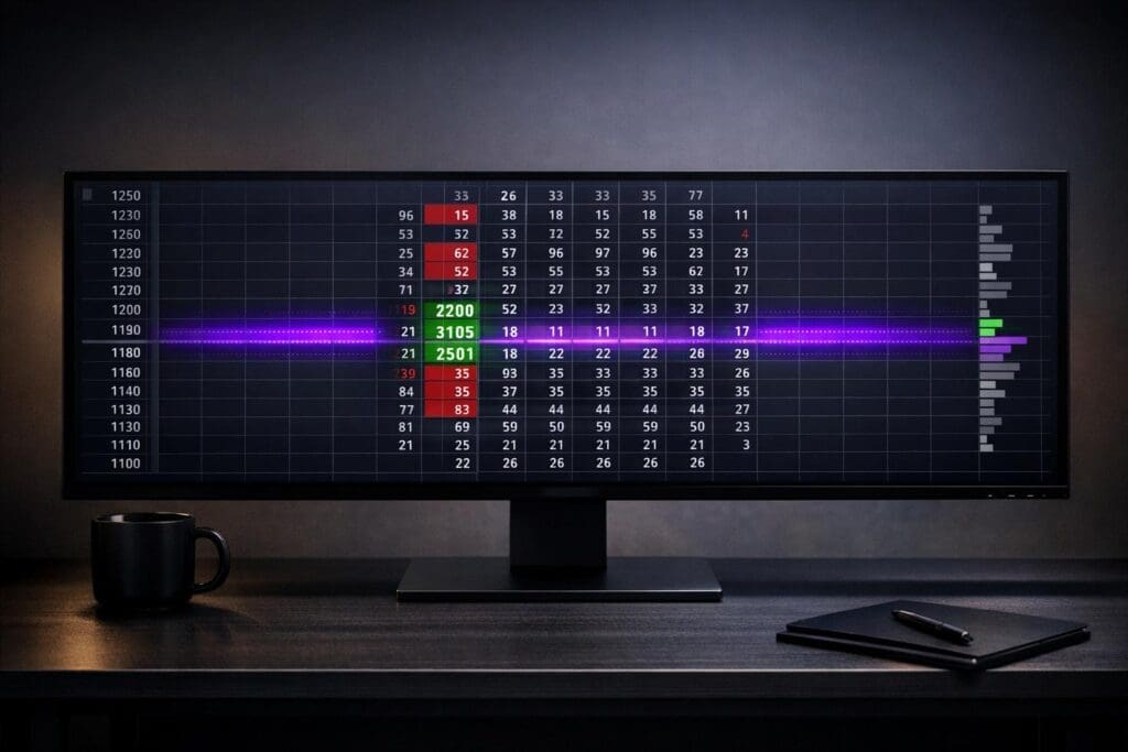 "Footprints show WHEN (timing), Volume Profile shows WHERE (context), DOM shows WHO (live liquidity)." – Algostorm
